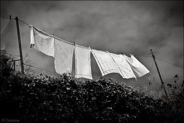 8/ Suis-je la seule à éprouver ce sentiment de sérénité à la vue du linge propre ondulant sous une brise légère ? Je me souviens du plaisir d'étendre le linge dans le jardin de Bretagne. Je m'appliquais à réaliser un ensemble harmonieux, pour le simple plaisir des yeux. cliché d’Antoine Carcenac Lorsque le linge, solidement…